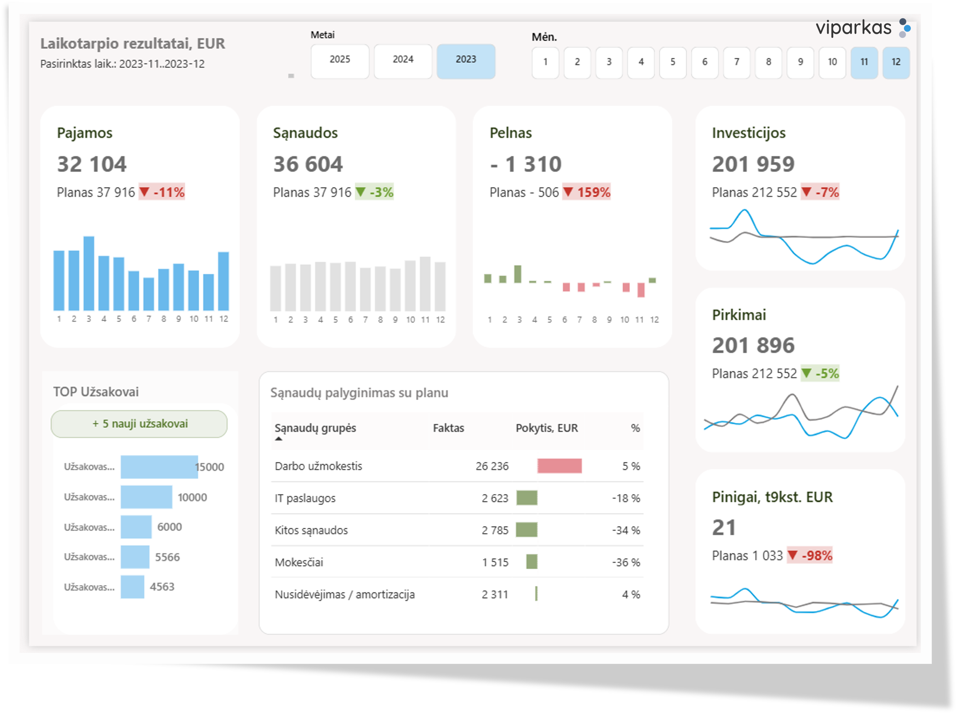 Interaktyvios KPI ir rodiklių ataskaitos, leidžiančios matyti informaciją įvairiais pjūviais, matuoti tikslų pasiekimą, įspėti apie neigiamas tendencijas, greitai ir lengvai vertinti situaciją – štai ko Jums reikia kasdien.